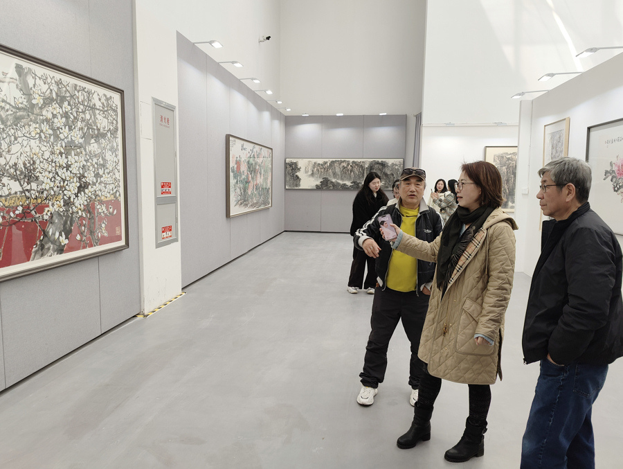 步入展厅,一幅幅水墨丹青交织出一片独属于中华传统文化的浪漫天地。壮阔雄浑的山河图景、秀丽婉约的江南水乡、妙趣盎然的花鸟虫鱼、春耕秋收的民俗风情……四季轮转的诗意与智慧徐徐铺展。